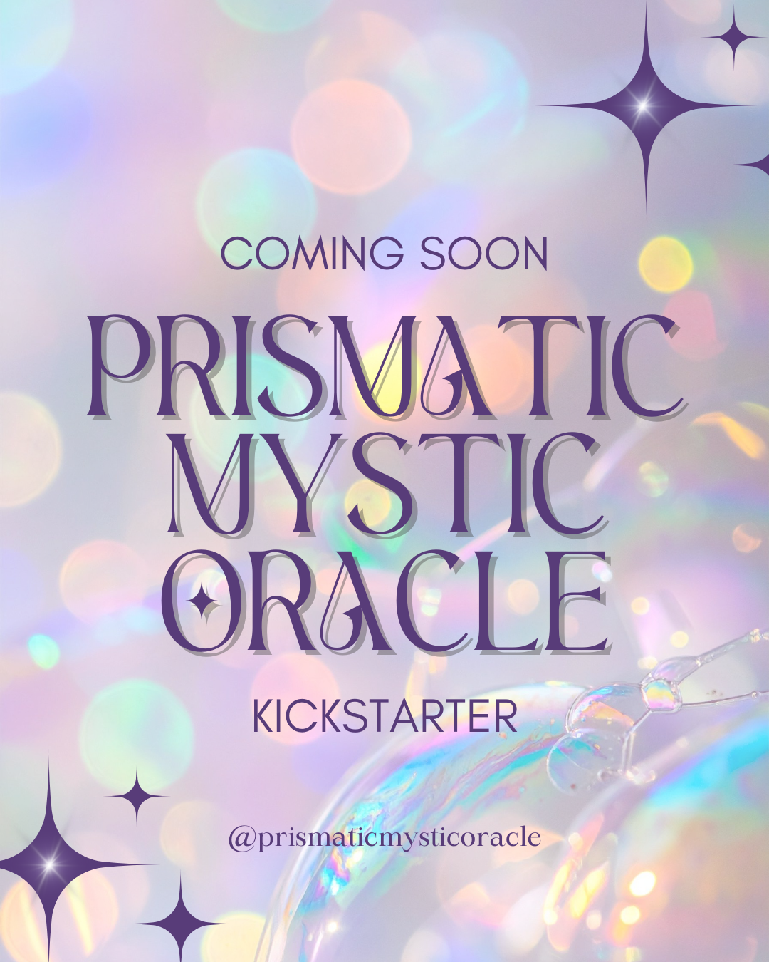The Prismatic Mystic Oracle is a culmination of her years as a spiritual guide, healer, and writer. After becoming a mother in 2024, she realized her capacity for 1:1 client sessions diminished, and yet her desire to serve others only grew. This deck is a way for her to continue to support and guide countless others around the world without taking time away from tending to her family, garden, and other creative works.